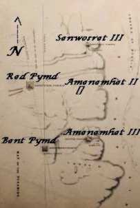 Dahshur, located 2 1/2 miles (4 km) North of the Bent Pyramid, has flat triangular sides at a 43 degree angle, and is 340 feet (104 meters) tall. Whatever engineering problems may have existed in the building of the Meidum and Bent Pyramids were resolved and the Red Pyramid has survived the ages in excellent condition, save the pilfering of it's fine limestone casing and its' royal treasures. The local limestone used in the construction of the core has a reddish hue, giving the Pyramid it's color and name. The Red Pyramid is the third largest Pyramid of Egypt, surpassed only by those built by Sneferu's son and grandson, Cheops and Chephren.